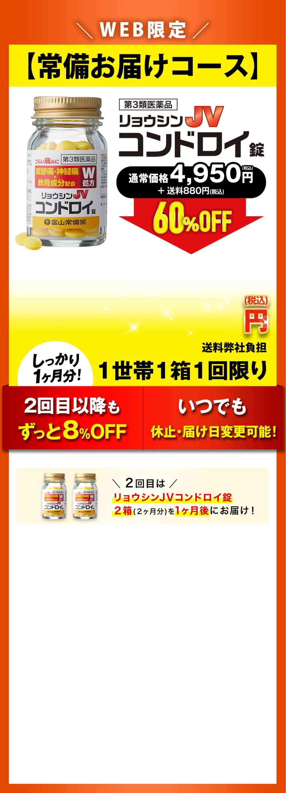 「リョウシンJVコンドロイ錠」は、体の中からじっくり作用するお薬です。